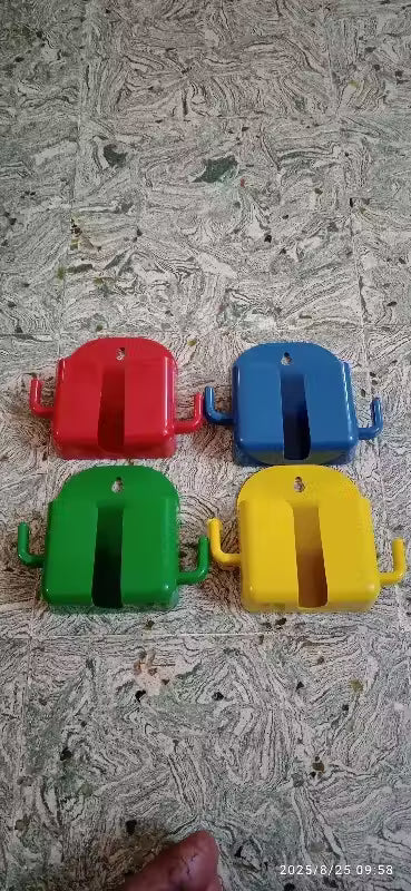 Stysol 4 Pcs Combo of Self-Adhesive Wall Mount Mobile Holder & Charging Stand, Multipurpose Phone Charger with 2 Hooks, Perfect everywear, 4 Packs, Assorted Colors