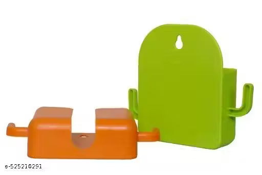 Name : Stysol 4 Pcs Combo of Self-Adhesive Wall Mount Mobile Holder & Charging Stand, Multipurpose Phone Charger with 2 Hooks, Perfect for Bedroom, Kitchen, Office Use - 4 Packs, Assorted Colors